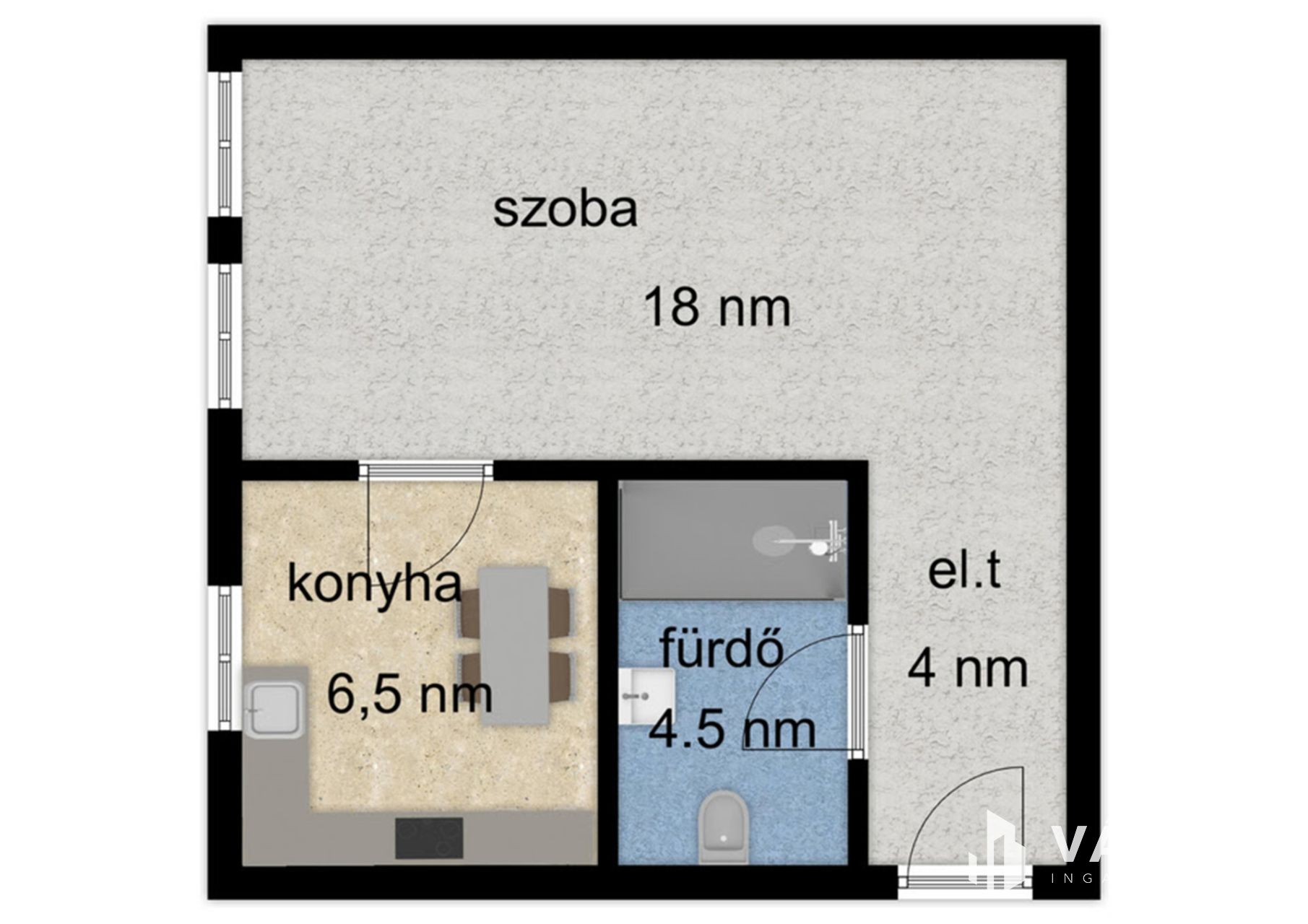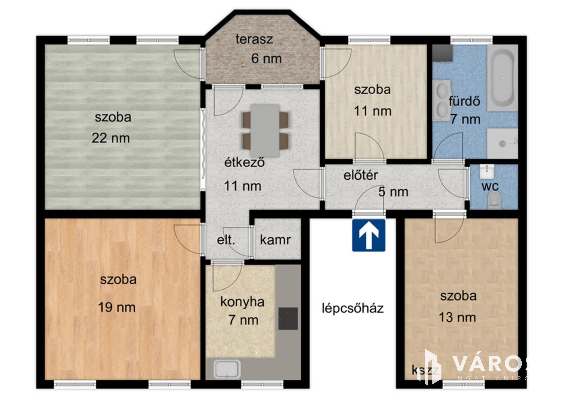 - Nappali-étkező, 3. szoba,konyha,fürdő,WC,kamra, erkély.