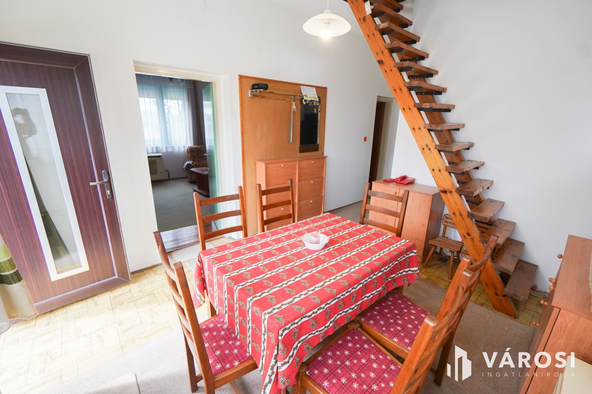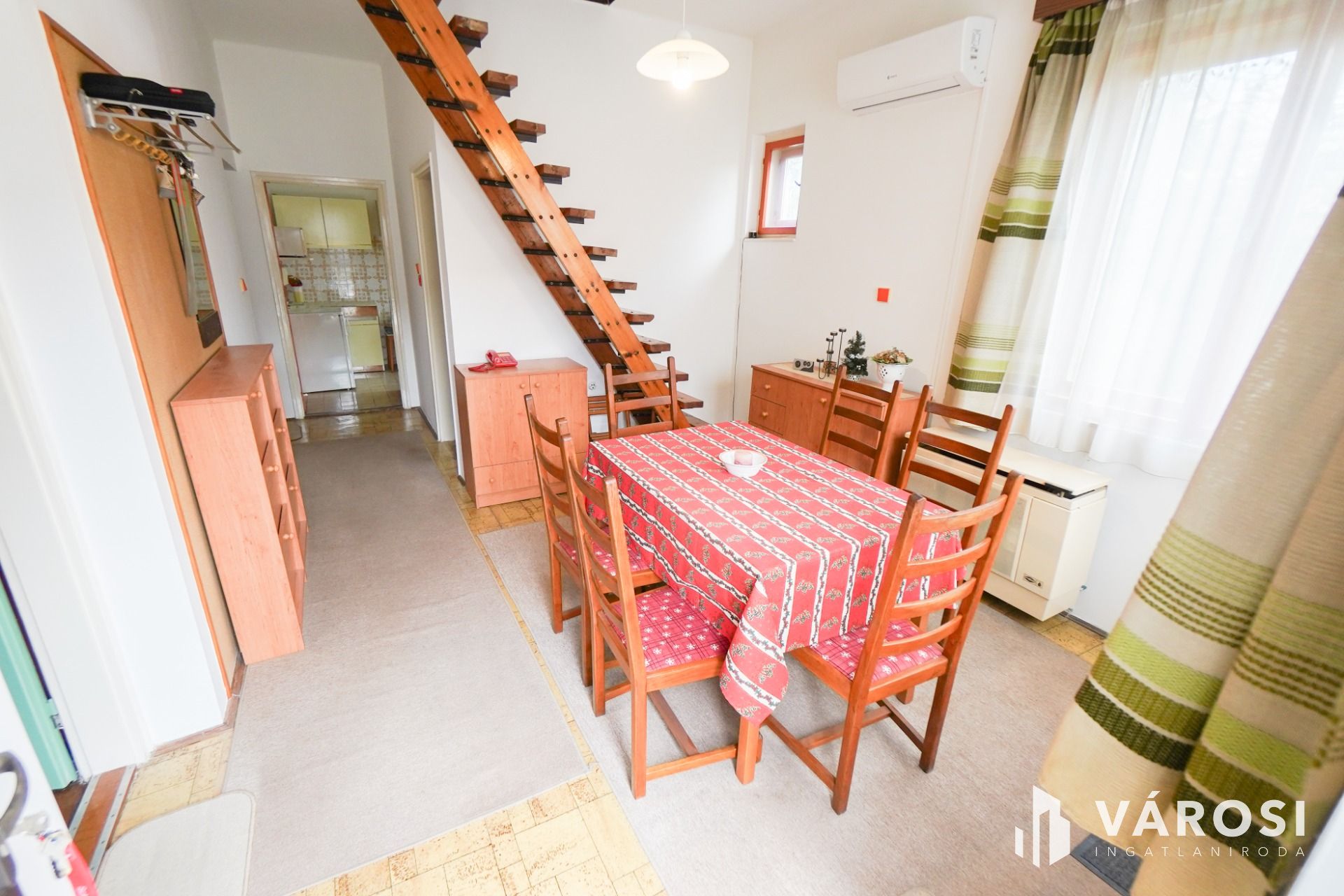 A ház 3 szinten helyezkedik el melyekből a földszinti és a tetőtéri egység belső lépcsővel össze lett kötve.