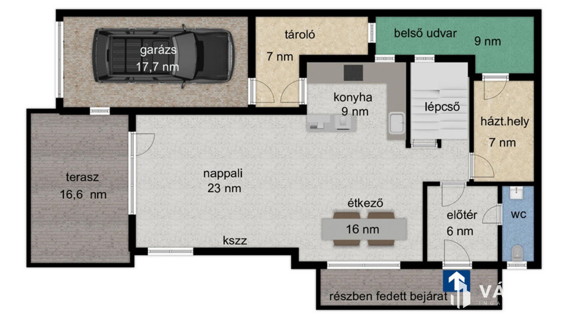 - 164 nm lakótér + 24 nm-es terasz, 8,7 nm patió.