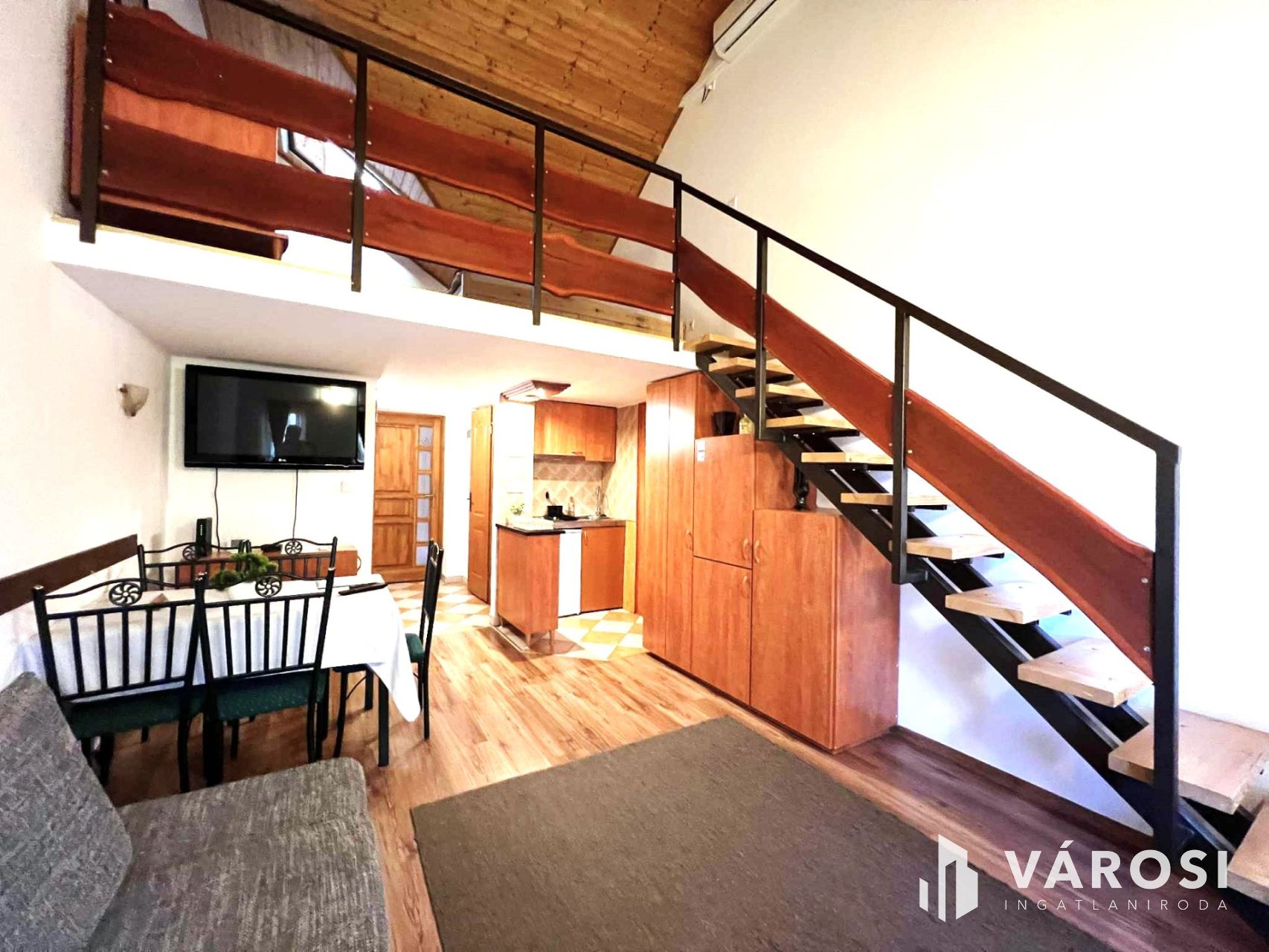 eladóvá vált egy négylakásos társasházi lakás, kétszer kétszintes, galériás ingatlana, berendezve, bútorozottan, minden kiegészítővel felszerelten.