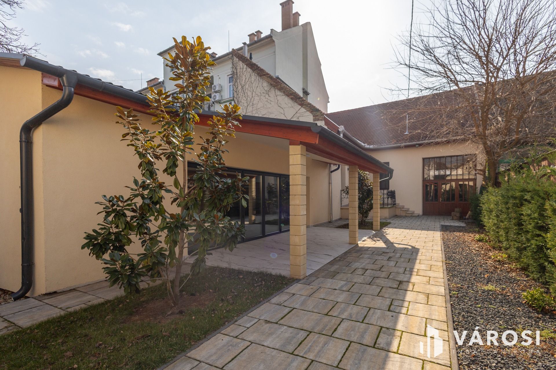Az ingatlan egy 666 m²-es telken helyezkedik el, két különálló épülettel, igényes, reprezentatív környezetben. A főépület teljes körű felújításon esett át, prémium anyaghasználattal, modern kényelmi megoldásokkal (klíma, elektromos redőny, videokaputelefon, központi fűtés).