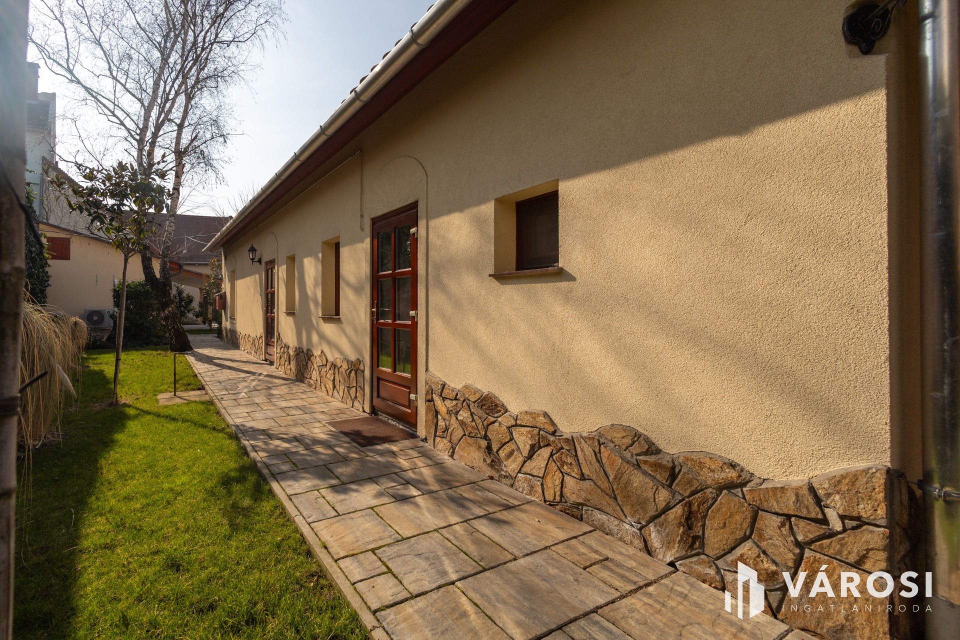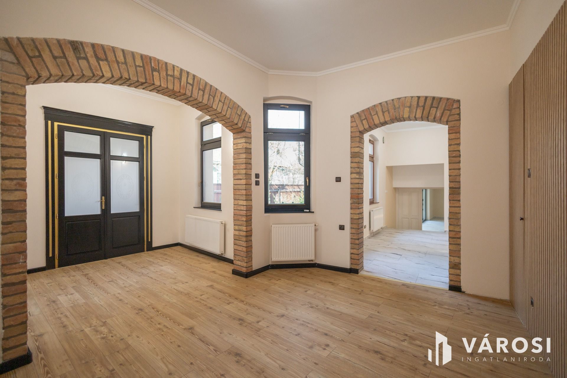 A teljeskörűen felújított, impozáns polgári ház 3 tágas szobával és konyhával rendelkezik. A gyönyörű belső terek prémium anyaghasználattal készültek, minden részletében a minőséget tükrözik. Az egyik, üvegportálos szoba, amelyhez egy fedett terasz kapcsolódik, különleges hangulatot áraszt, padlófűtéssel biztosítva a maximális komfortot. A fűtés központi rendszerű, radiátorokkal megoldva. Elektromos redőnyök, klímák és kiépített videokaputelefon rendszer növelik a kényelmet és a biztonságot.