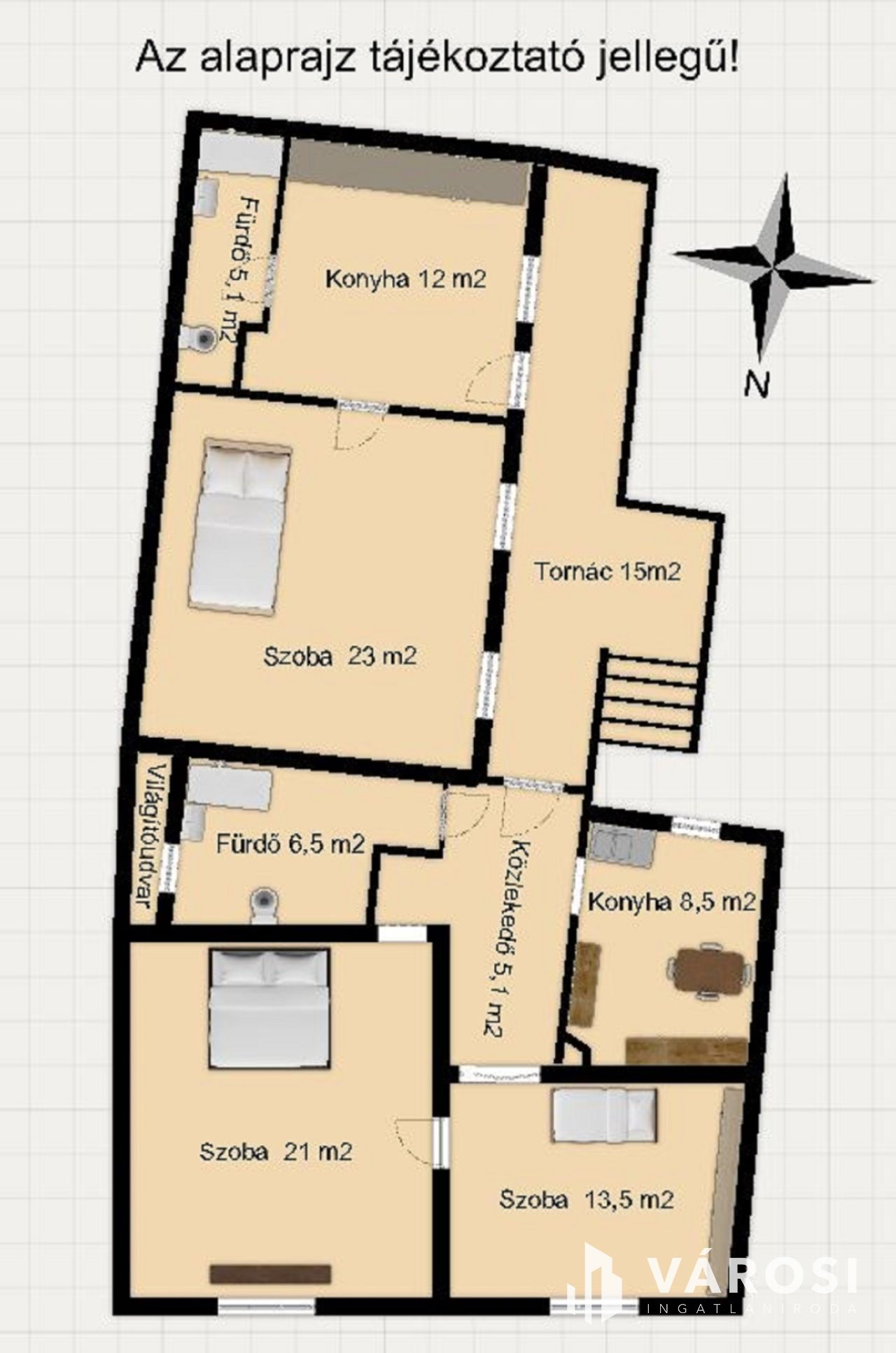 • A két lakás közös, 15 m²-es tornácról nyílik