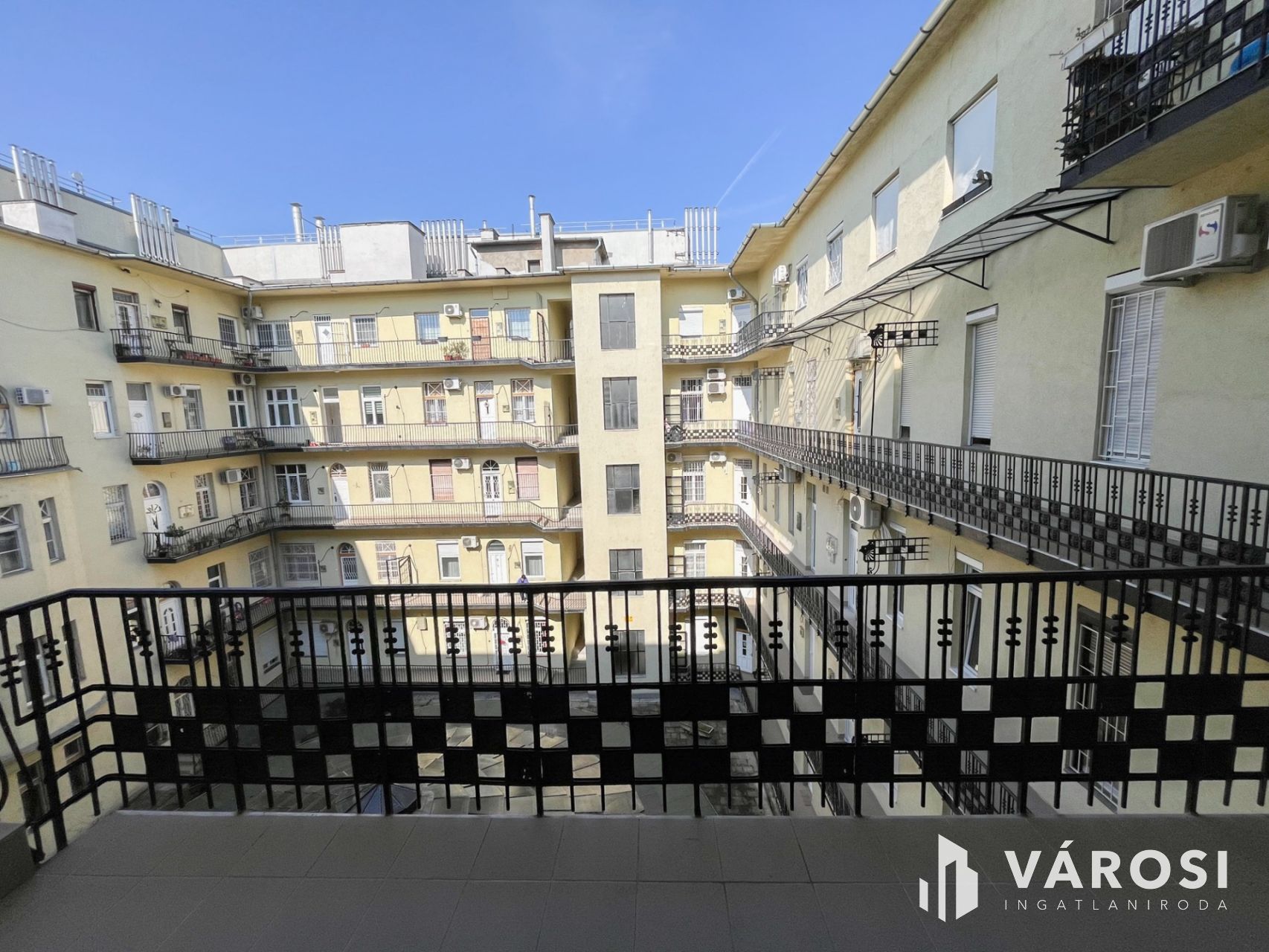 Közel 3nm-es erkély mely a mellékutcára, kisebb részben a Rákóczi útra tekint.