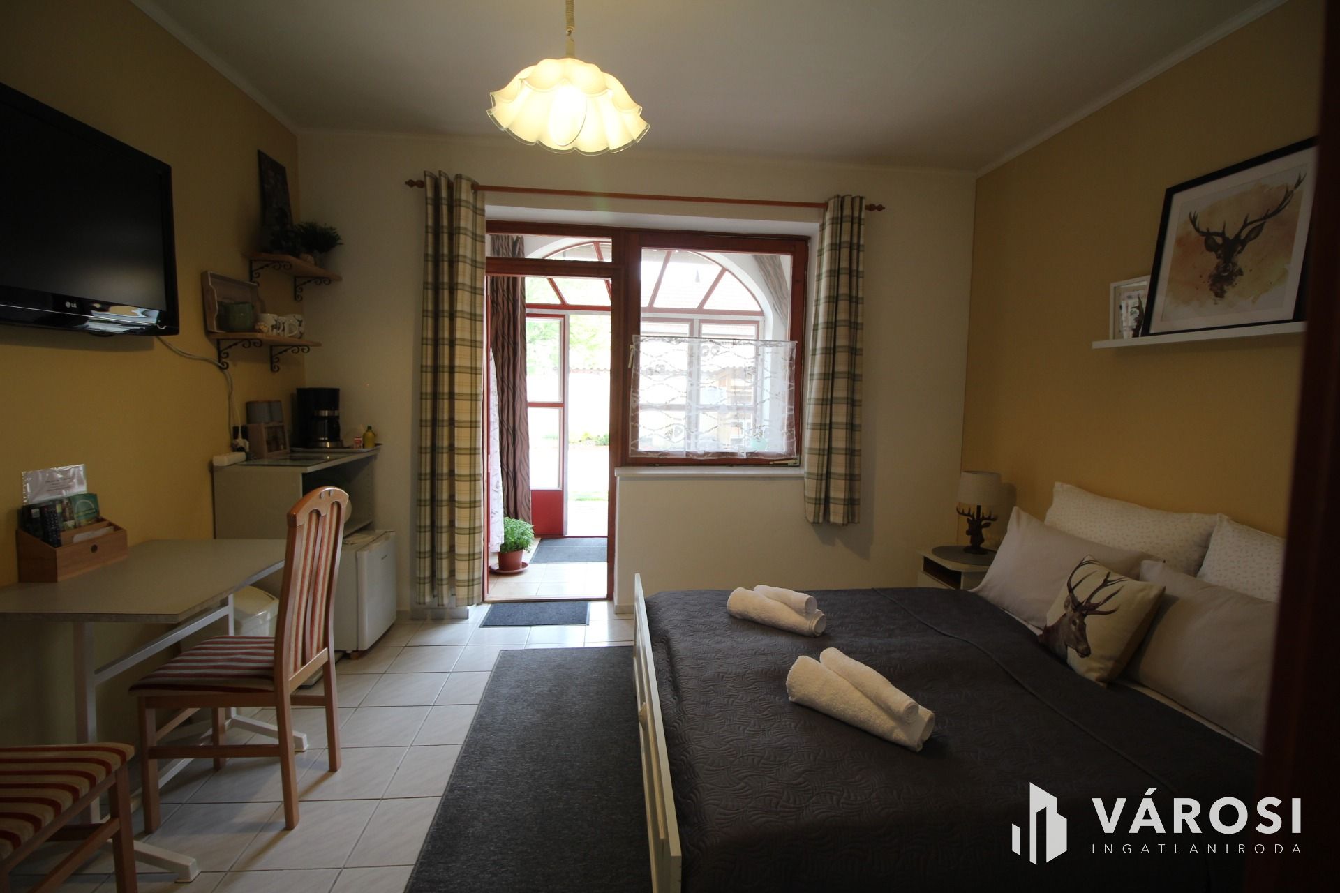 Ajánlom befektetők, vagy vállalkozni vágyóknak is mivel az 55 nm-es , 2 szobás első lakórész mellett, egy 132 nm-es apartmanház is található itt. Az utóbbiban 4 db , 1 szobás apartman található, szoba - fürdőszoba - előtér (melyekben egy-egy mini konyha igény szerint elhelyezhető) és terasz tartozik mindegyikhez. Ezen kívül van itt egy közös - minden vendég számára használható - konyha is.