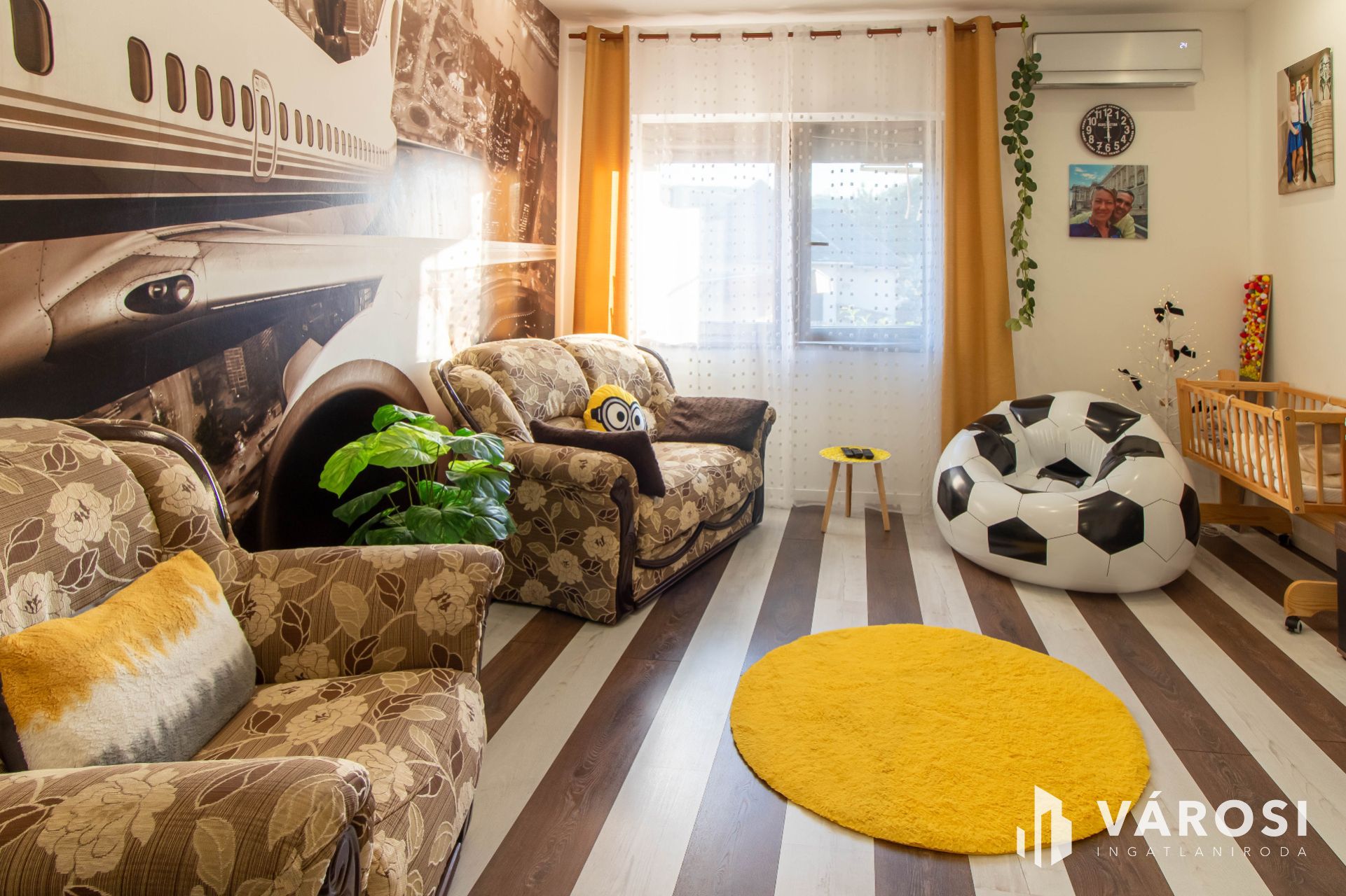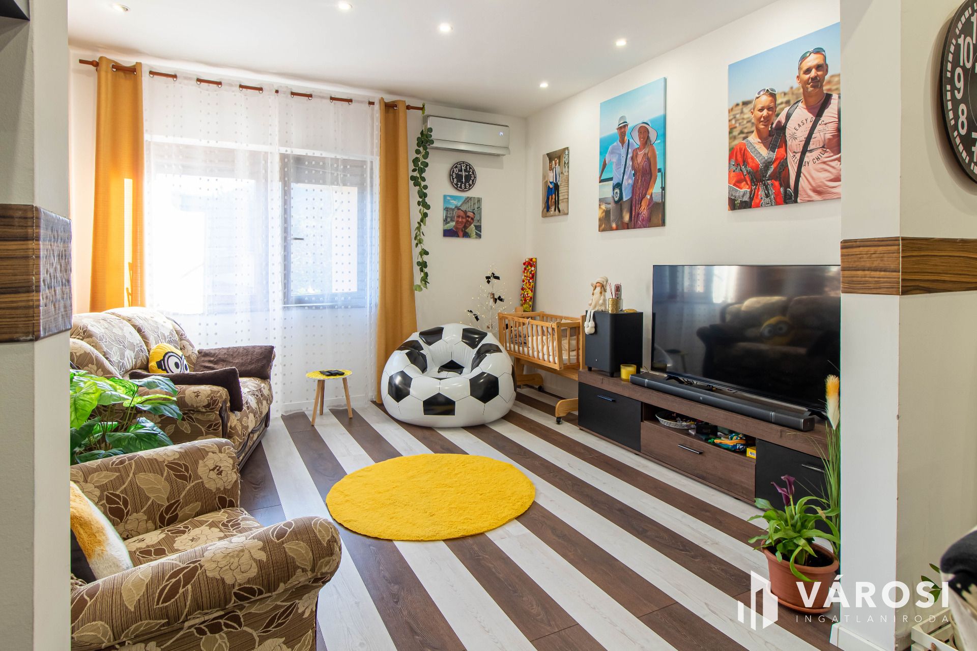 Ez az otthon 1969-ben épült, de 2023-ban teljes körű felújításon esett át, és ma egy modern, letisztult, fiatalos stílusú életteret kínál. A felújítás vezérelve a MINŐSÉG volt. A teljes elektromos hálózat korszerűsítve lett, extra teljesítménnyel a klímákhoz, új víz- és csatornarendszer került kiépítésre, a külső-belső nyílászárókat lecserélték, az ablakok szúnyoghálót és alu redőnyt kaptak. A homlokzat 10 cm-es külső szigetelést, a tető pedig 30 cm kőzetgyapot szigetelést kapott, így a hő megtartása télen-nyáron elsőrangú .A lakás komfortját négy darab 3,5 kW-os, energiatakarékos hűtő-fűtő klíma garantálja, minden évszakban tökéletes hőmérsékletet teremtve, és a H tarifás elszámolásnak hála, még a leghidegebb hónapokban sem haladta meg a villanyszámla a 35 ezer forintot.