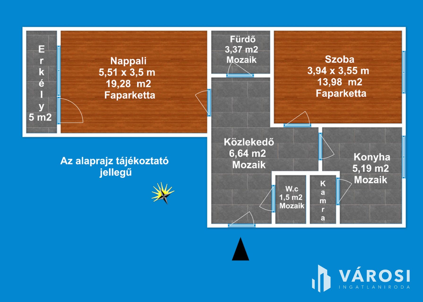 A lakás délkeleti tájolása, miatt rendkívül napfényes ingatlan.