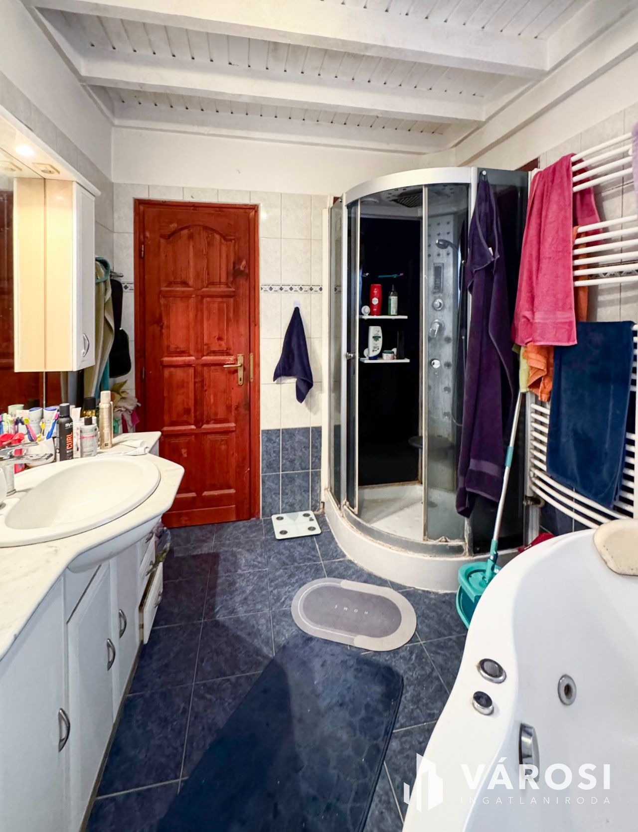 Az ingatlan továbbá elektromos garázskapuval és saját tárolóval rendelkezik. A melléképület és a beépített szekrények, illetve a gardrób további tárolási lehetőségeket biztosítanak. Az extra kényelmet a klíma és a riasztó rendszer garantálja.