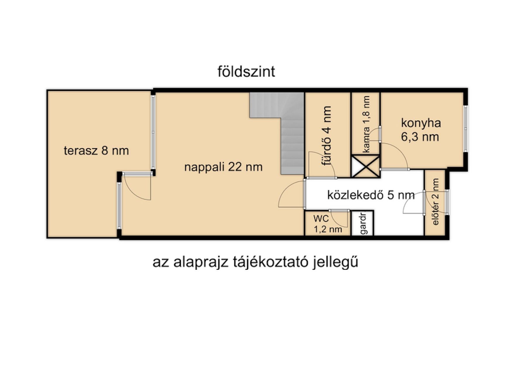 Az ingatlan beton lábazatra épült tégla falazattal, jelenleg is nagyon jó szerkezeti állapotban van. A lakás kétszintes, alapterülete 82 nm. A földszinten egy tágas nappali, külön fürdő és WC, konyha, kamra és egy előtér is helyet kapott. Az emeleti részen két szoba, fürdőszoba, WC és egy nagy gardróbszekrény is helyet kapott. Az otthon melegéről gázkazánról működtetett radiátorfűtés gondoskodik.. A kertet egy kis teraszon keresztül közelíthetjük meg.