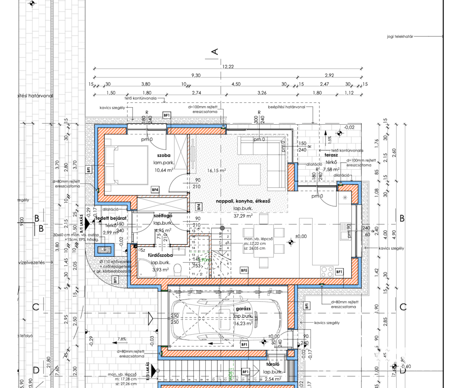 - 30 cm tégla falazat, 15 cm hőszigetelés