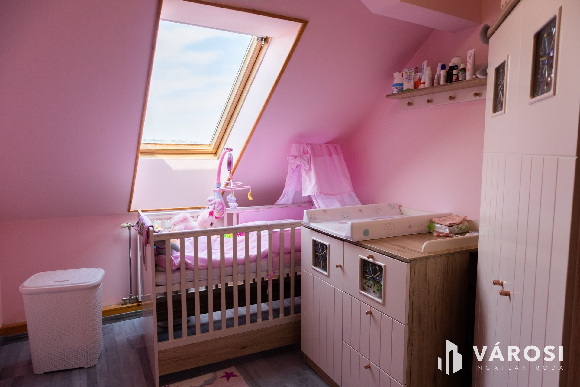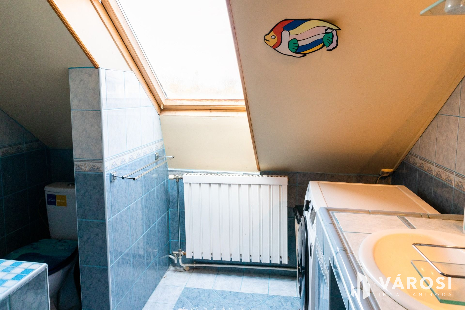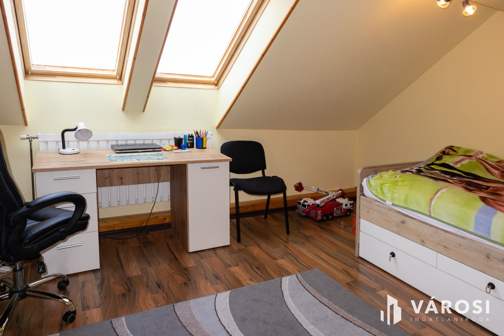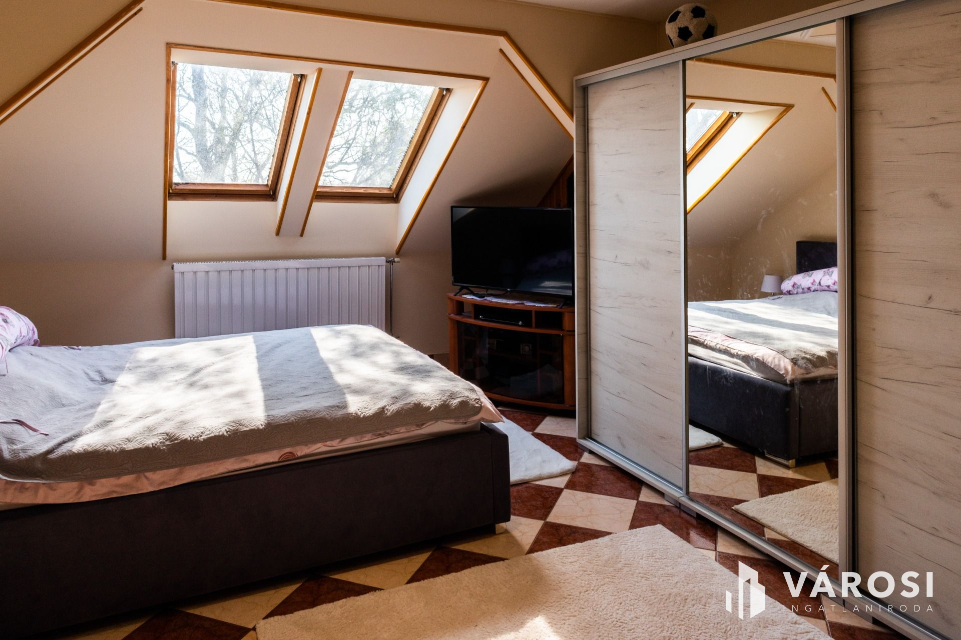 A nyílászárói fa VELUX tetőtéri ablakok illetve a többi nyílászárók műanyagok, hőszigetelt üvegezéssel illetve szúnyoghálóval ellátott. Árnyékolásról redőny gondoskodik. Tetőszerkezete, tetőszigetelése rendben van.
