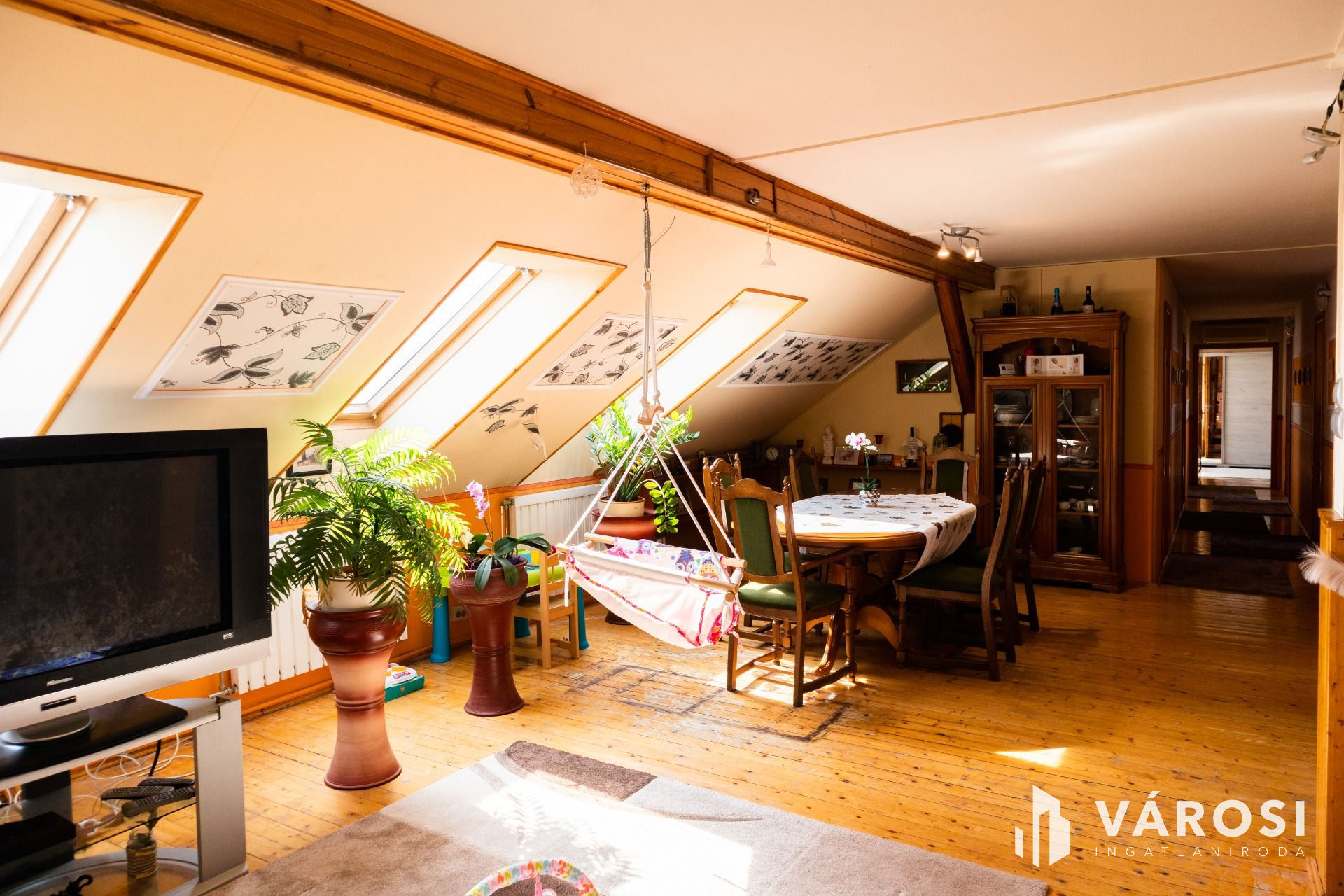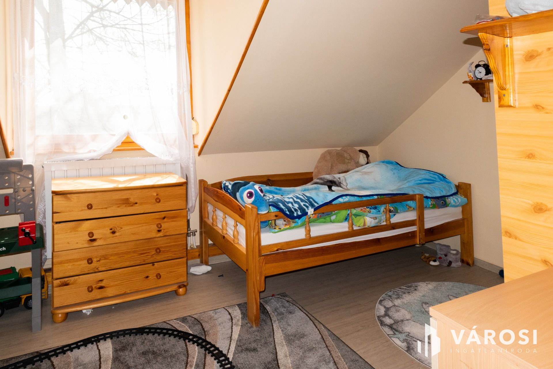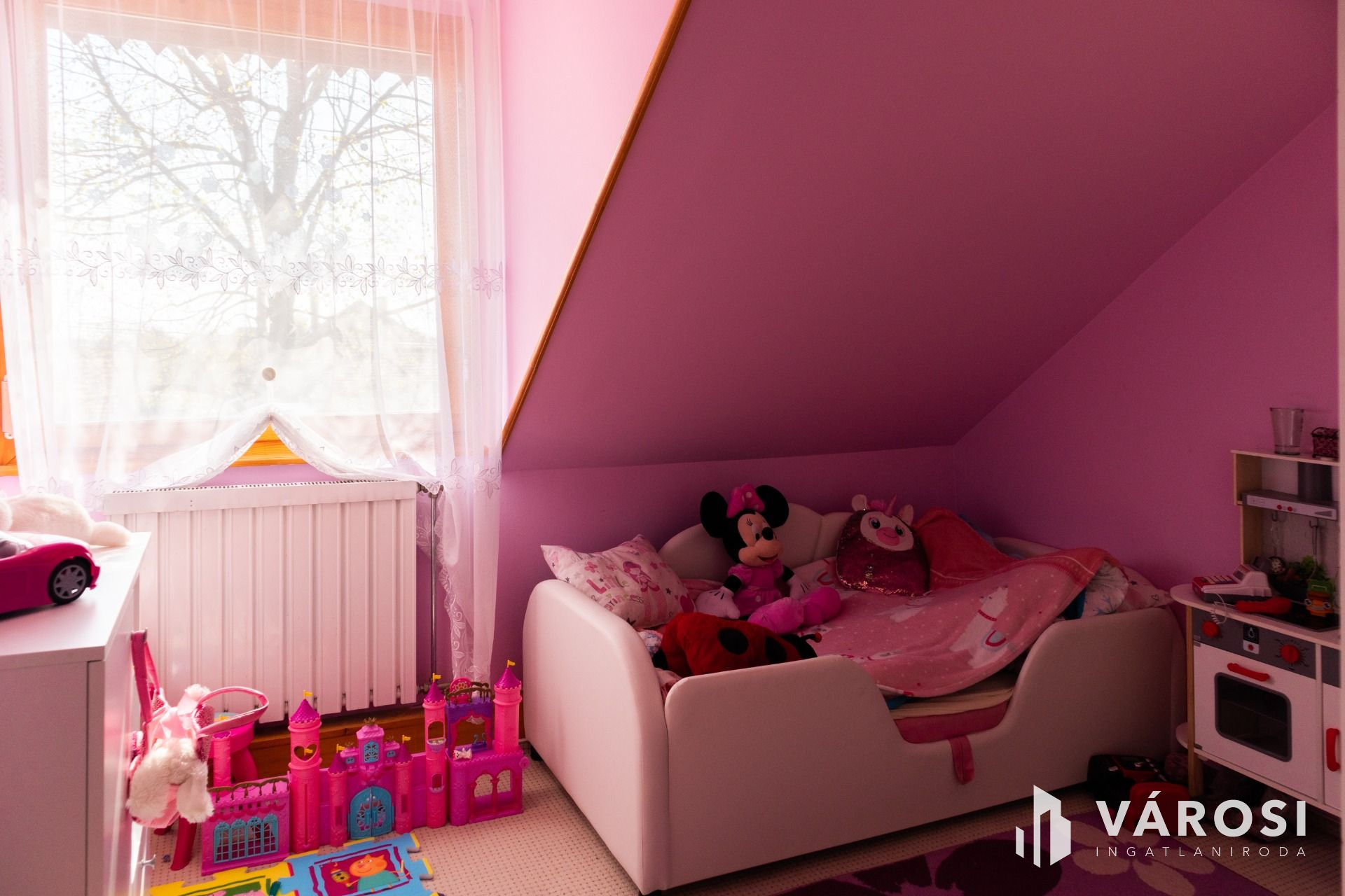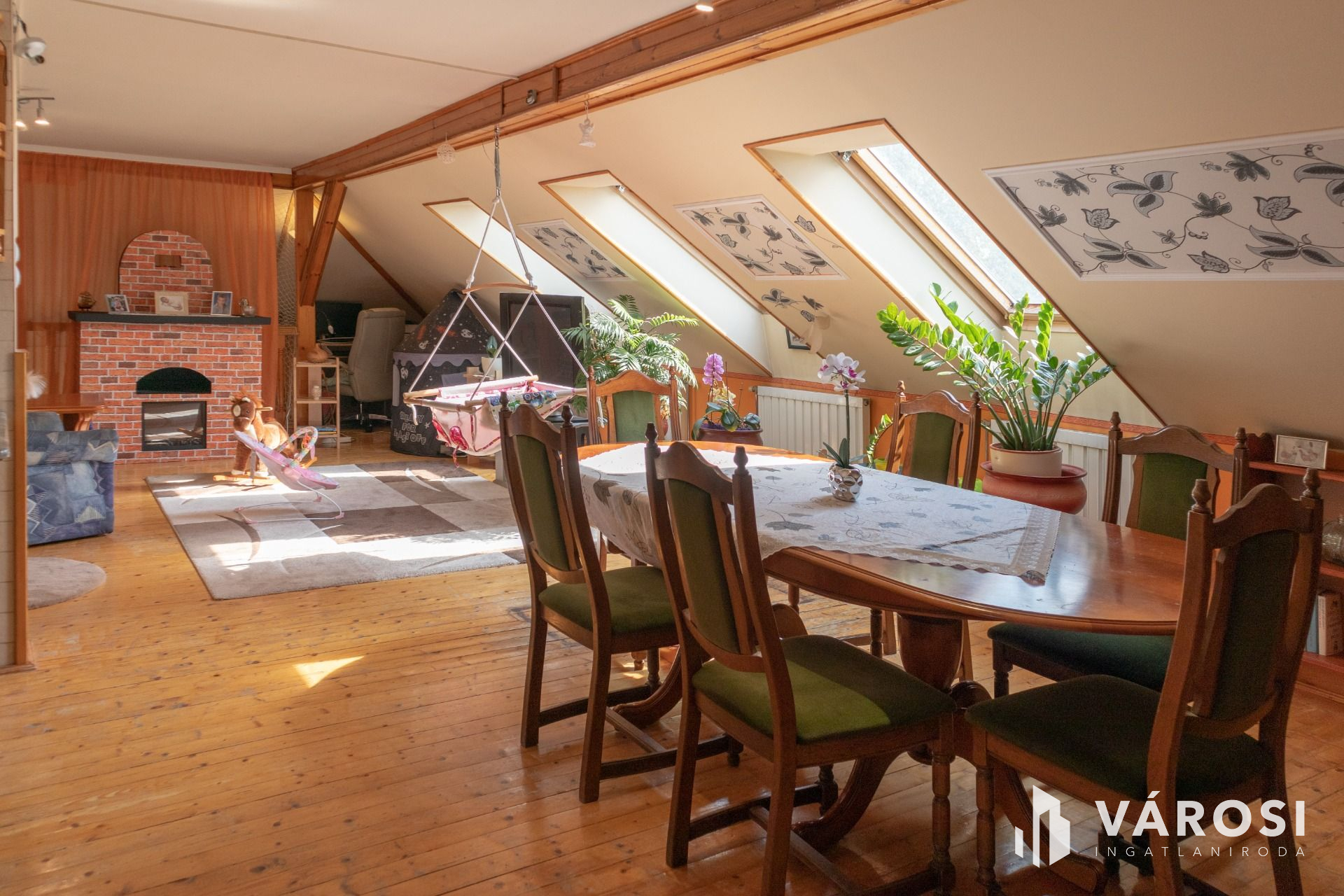 A nyílászárói fa VELUX tetőtéri ablakok illetve a többi nyílászárók műanyagok, hőszigetelt üvegezéssel illetve szúnyoghálóval ellátott. Árnyékolásról redőny gondoskodik. Tetőszerkezete, tetőszigetelése rendben van.