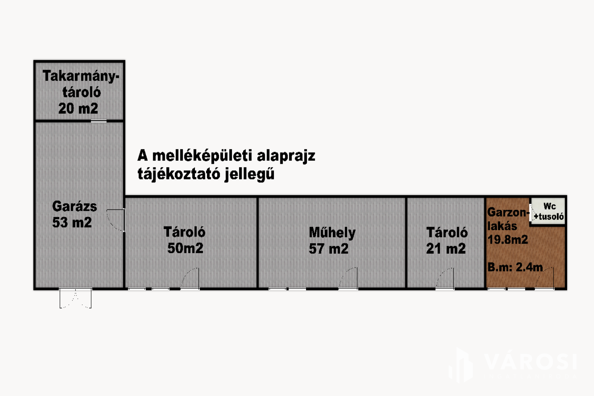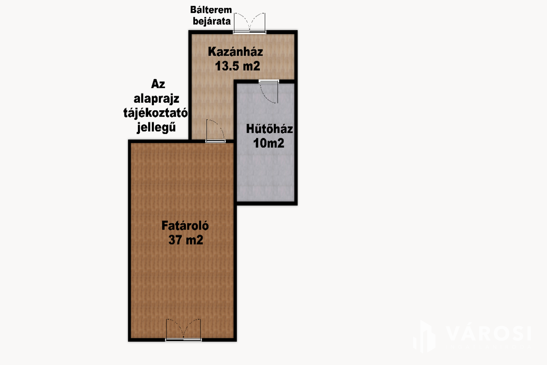 60 m2 es épületben: 1 fatárolót,1 kazánházat,1 hűtőházat találunk.