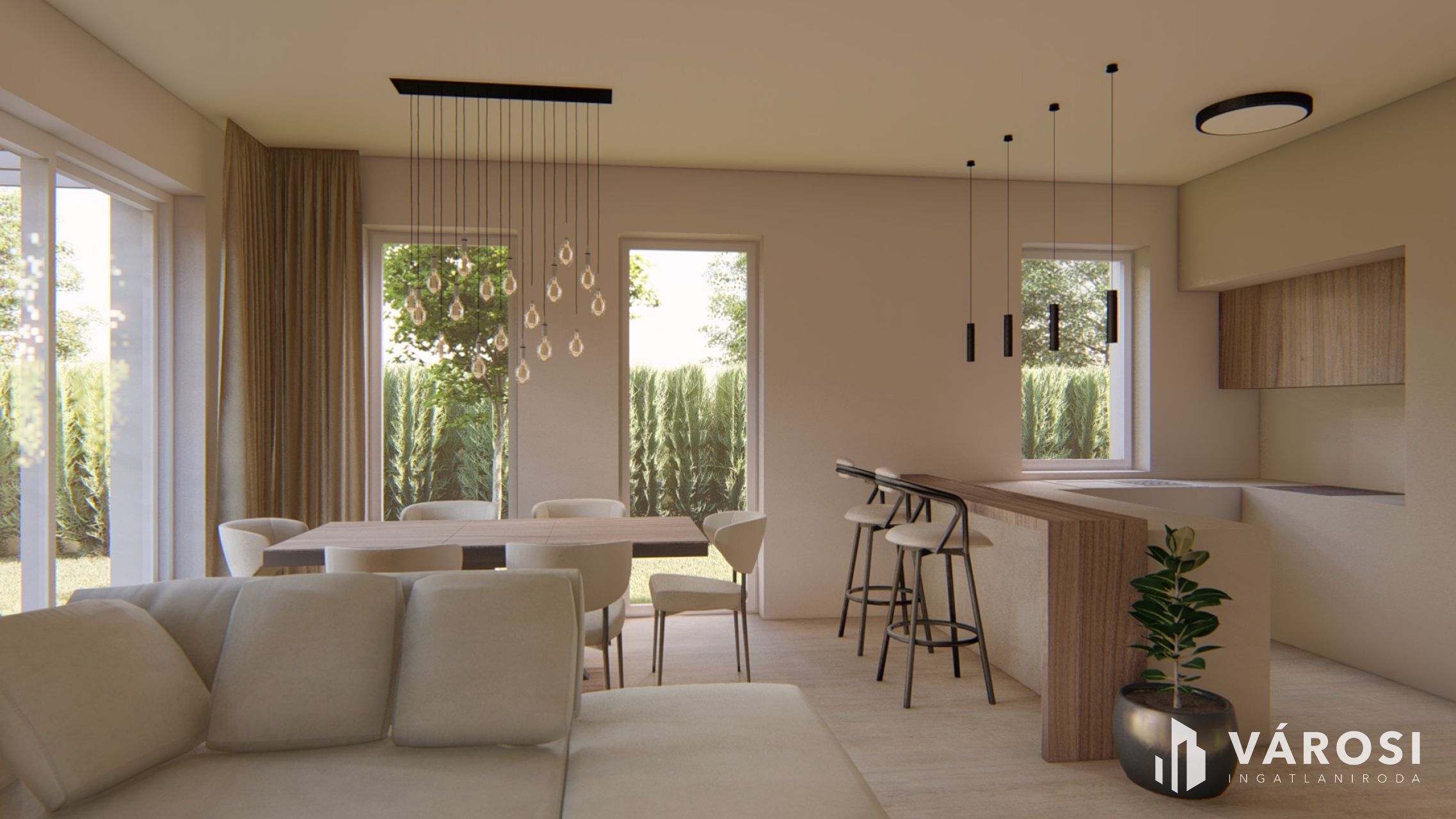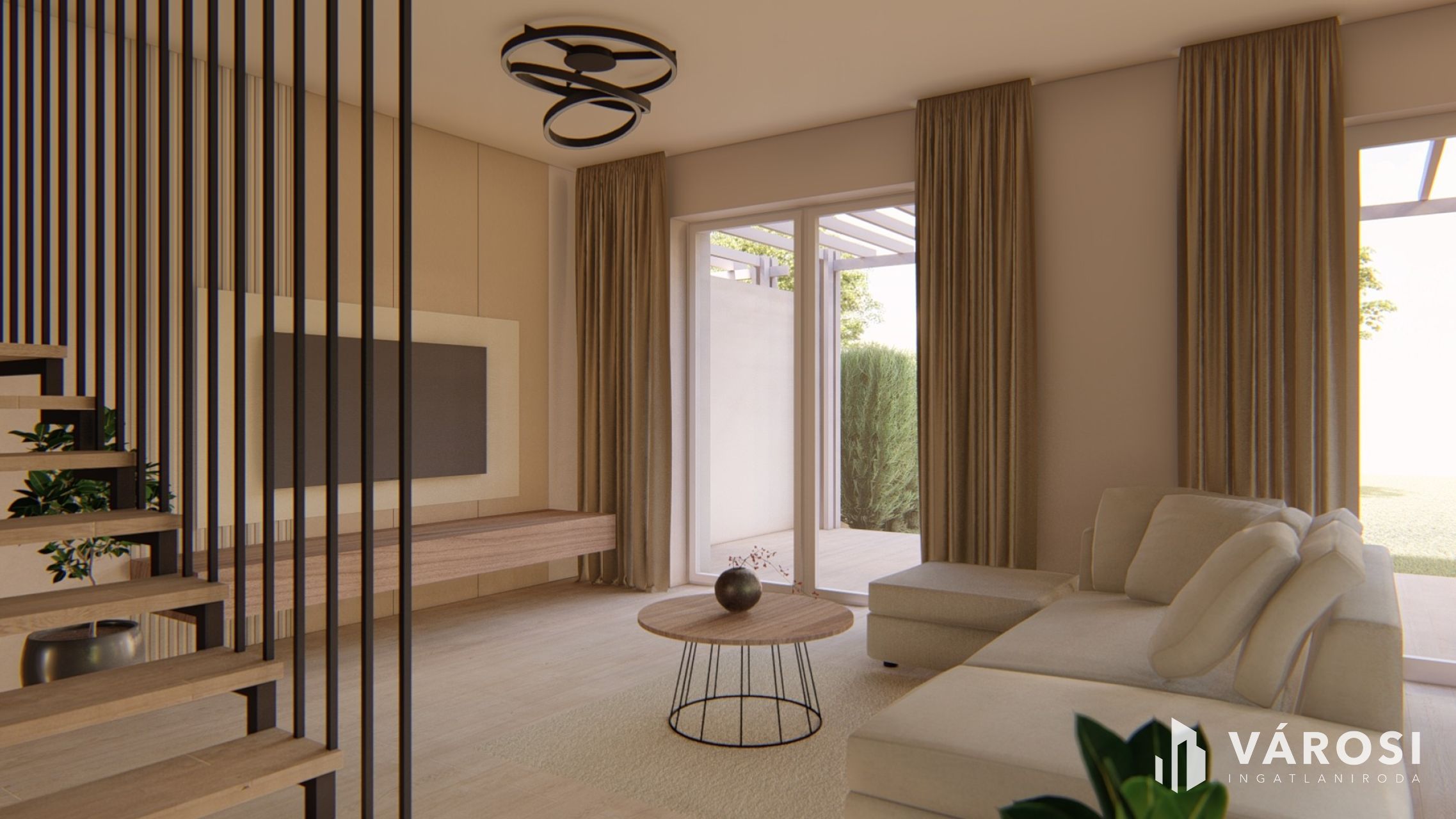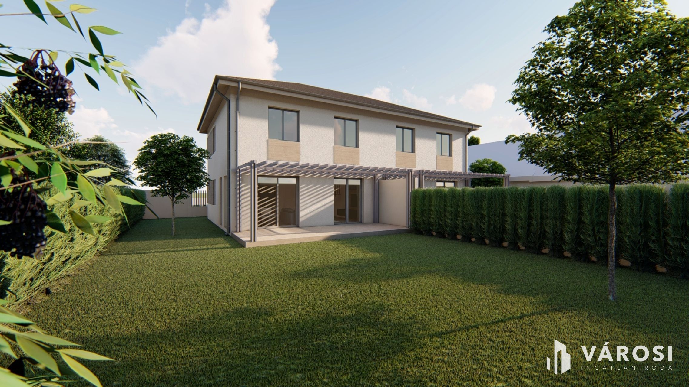 Eladó újépítésű, kulcsrakész kivitelezésű ikerház „Borostyán” házrésze. Az ikerház a közös fal kivételével, mint két szomszédos ház funkcionál, mindkét rész saját utcafronttal és udvarral rendelkezik.