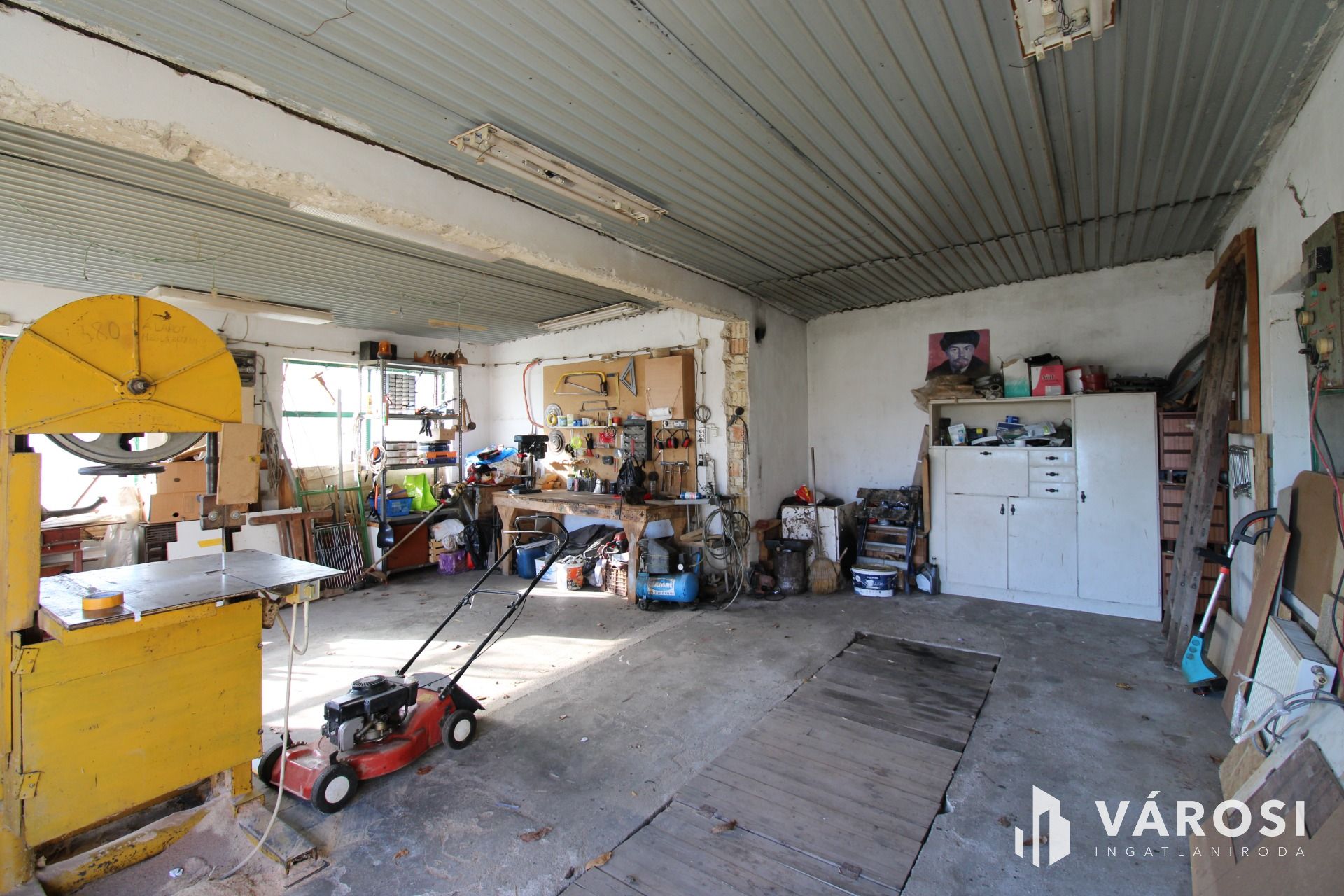 A 720 nm-es telken található egy 52 m²-es, nagy belmagasságú, téglából épült, szerelőaknás kétállásos garázs beépíthető tetőtérrel, kiépített 3 fázissal (380V) amely ideális szerviznek, műhelynek, raktárnak vagy kisebb gyártó- vagy szolgáltató tevékenységhez.