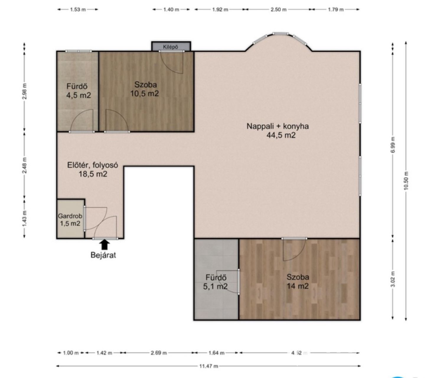Az ingatlan amerikai konyhás nappaliból és két kényelmes hálószobából áll, mindkét hálószobához saját, elegánsan kialakított fürdőszoba kapcsolódik, így a lakás ideális választás akár reprezentatív otthonnak, akár magas hozamú befektetésnek.