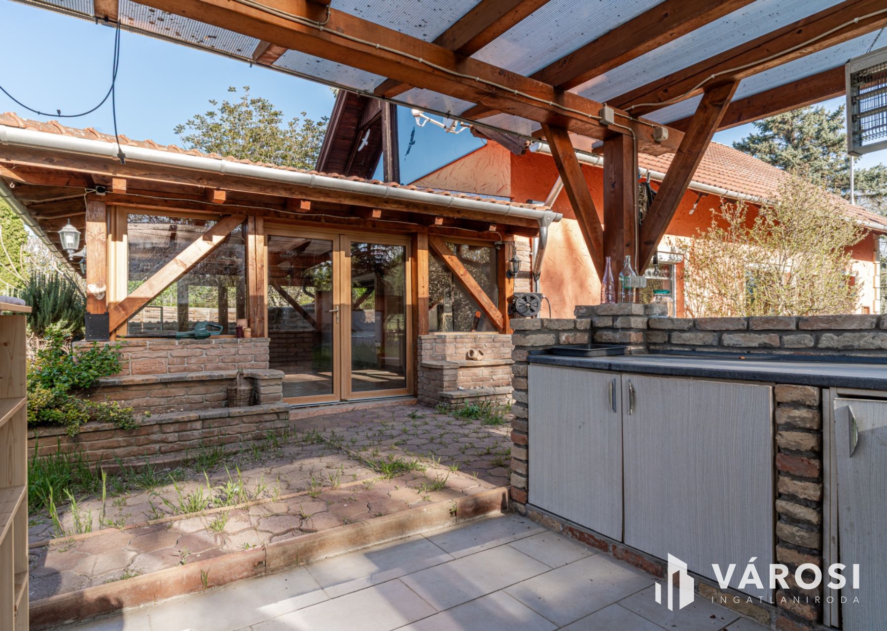 A ház szigetelt ház, az udvaron belül található három állásos kocsibeálló, ebből az egyik garázs.