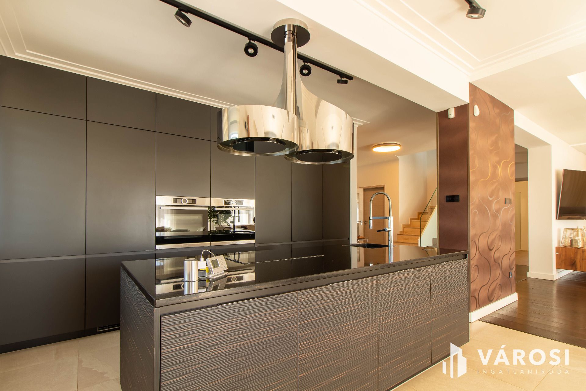 Érd egyik legnívósabb részén, Fenyves-Parkvárosban, egy 1604 m²-es, gondosan parkosított telken található ez az exkluzív, mediterrán stílusú villa, amely 2017-ben saját részre épült, majd 2020-ban teljes körű modernizáláson esett át, így nyerte el jelenlegi, tökéletesen letisztult, időtálló és egyben lenyűgöző megjelenését.