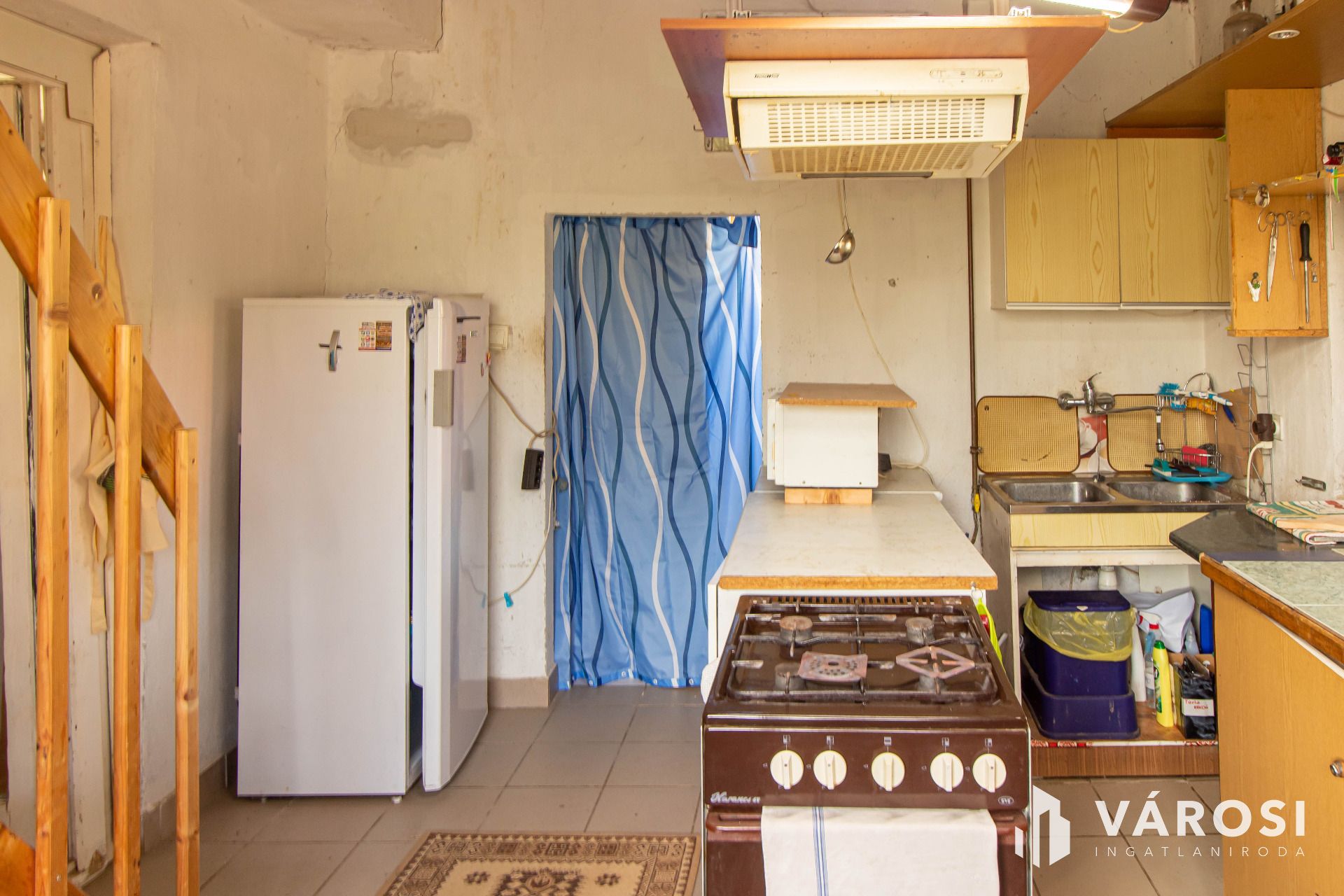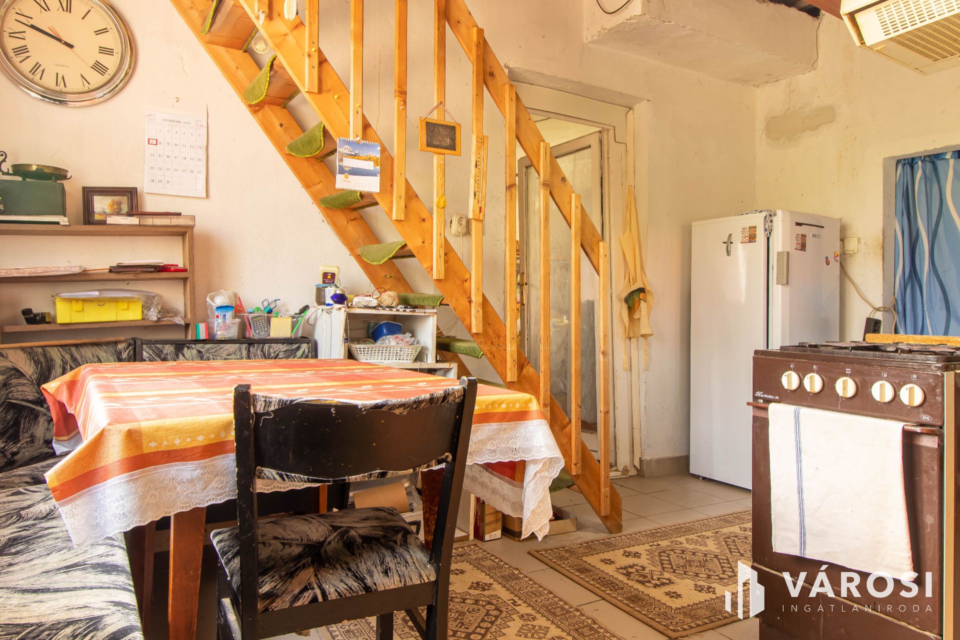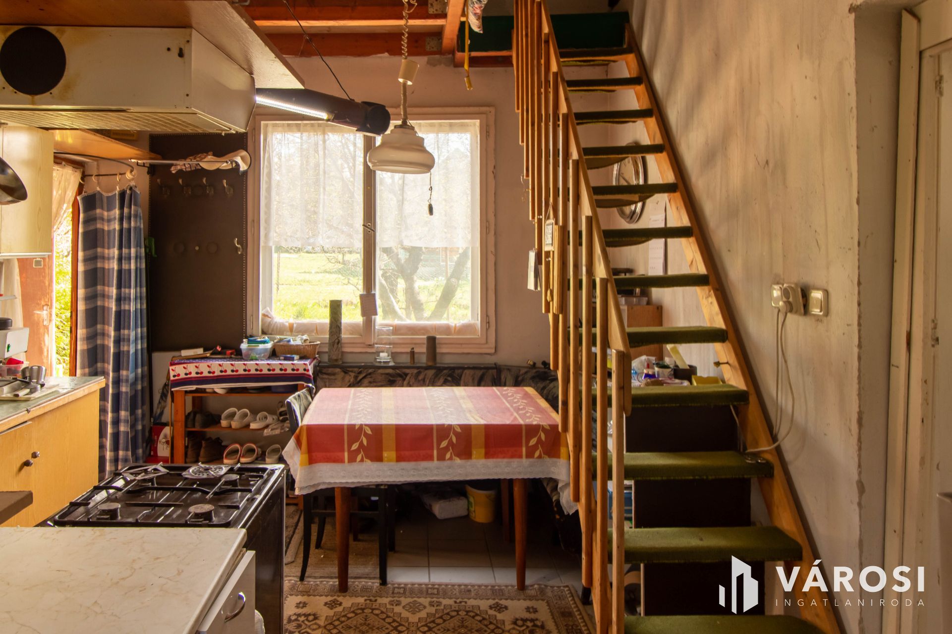 Az ingatlan egy két szintes épületet , amelynek első része 1974-ben épült Sóskúti kőből, majd 2001-ben téglából bővítették. Az építkezés azonban nem lett befejezve, így felújítandó vagy bontandó, attól függően, milyen tervei vannak az új tulajdonosnak. Az alsó rész elosztása a következő : étkező és a konyha egy légtérben, ebből nyílik a fürdő, továbbá a konyhából nyílik úgyszintén a háló szoba és egy másik kis szoba. Az emeleti szint jelenleg egy légtért alkot, kőzetgyapot szigeteléssel