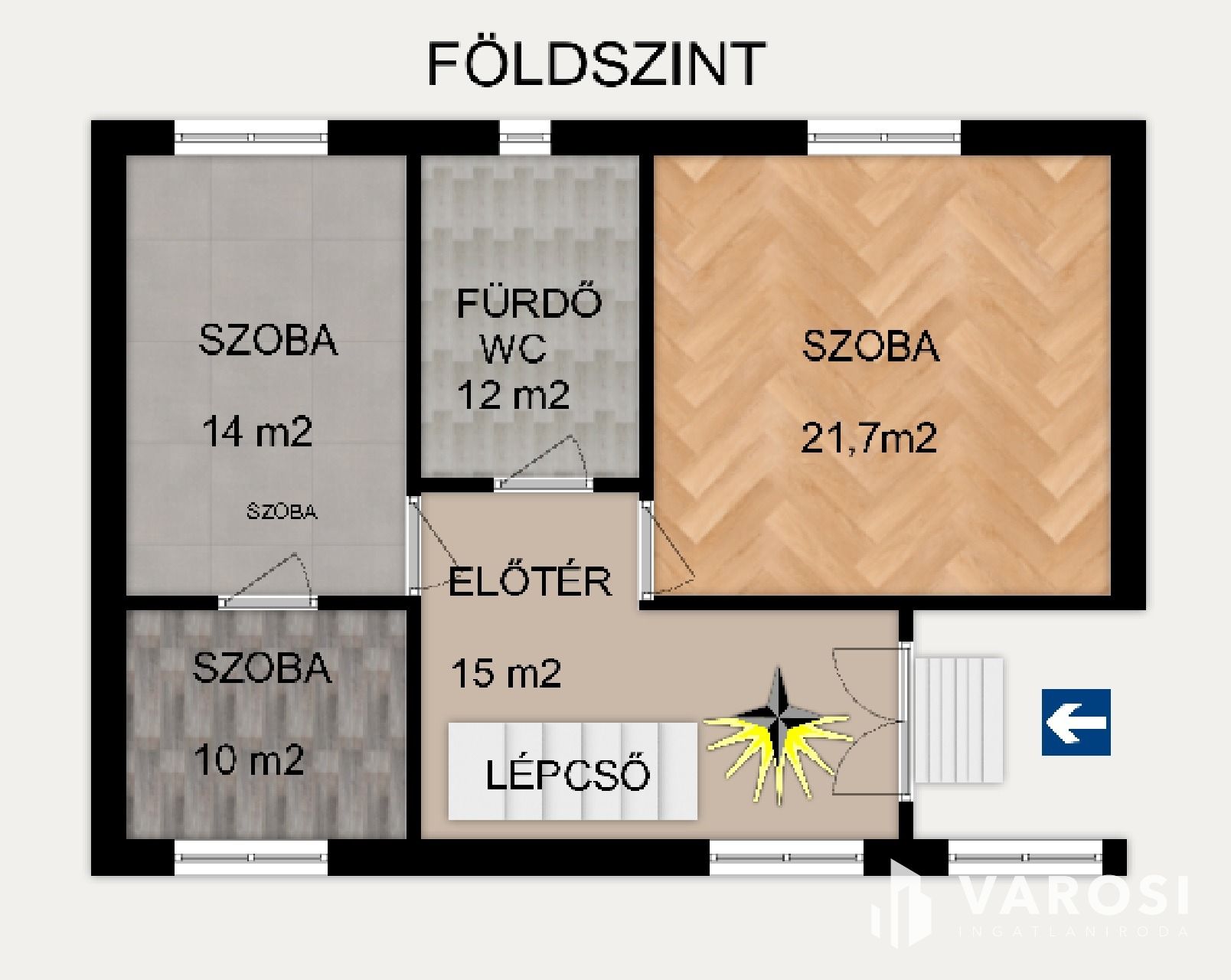 A szobák parkettások, a többi helyiségben hidegburkolatot érdemes lerakni.