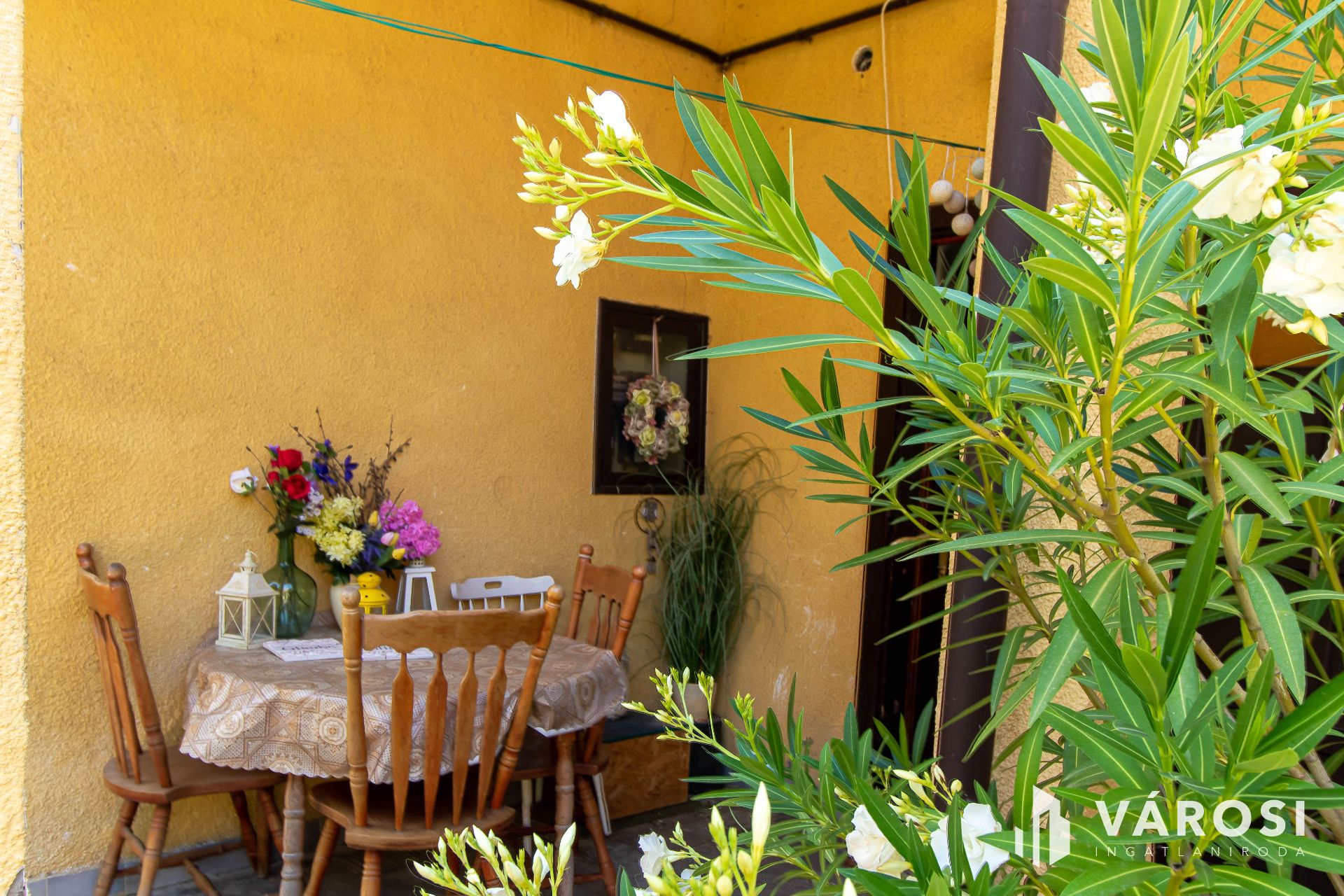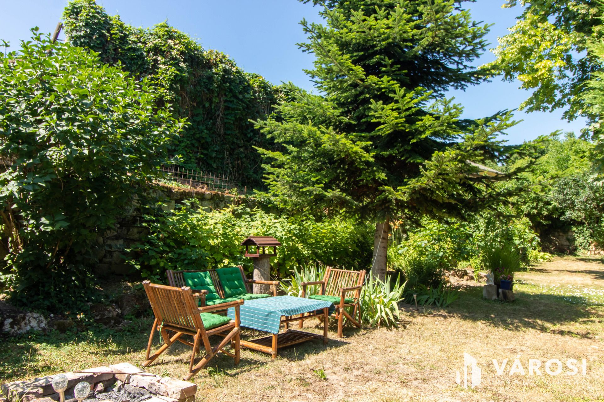 A házhoz tartozik egy pince, tárolóhelyiségek, valamint egy kis fedett terasz is. A kert rendezett, tele virágokkal, kerti kiülővel, a telekhatárt pedig egy körülbelül másfél méter magas, régi kövekből rakott kőfal szegélyezi, amely sajátos hangulatot kölcsönöz az udvarnak. Minden közmű be van vezetve, az ingatlan infrastruktúrája teljes. A környéken karnyújtásnyira megtalálható minden fontos szolgáltatás: bolt, iskola, óvoda, orvosi rendelő, tömegközlekedés – tényleg csak pár lépésre van minden.