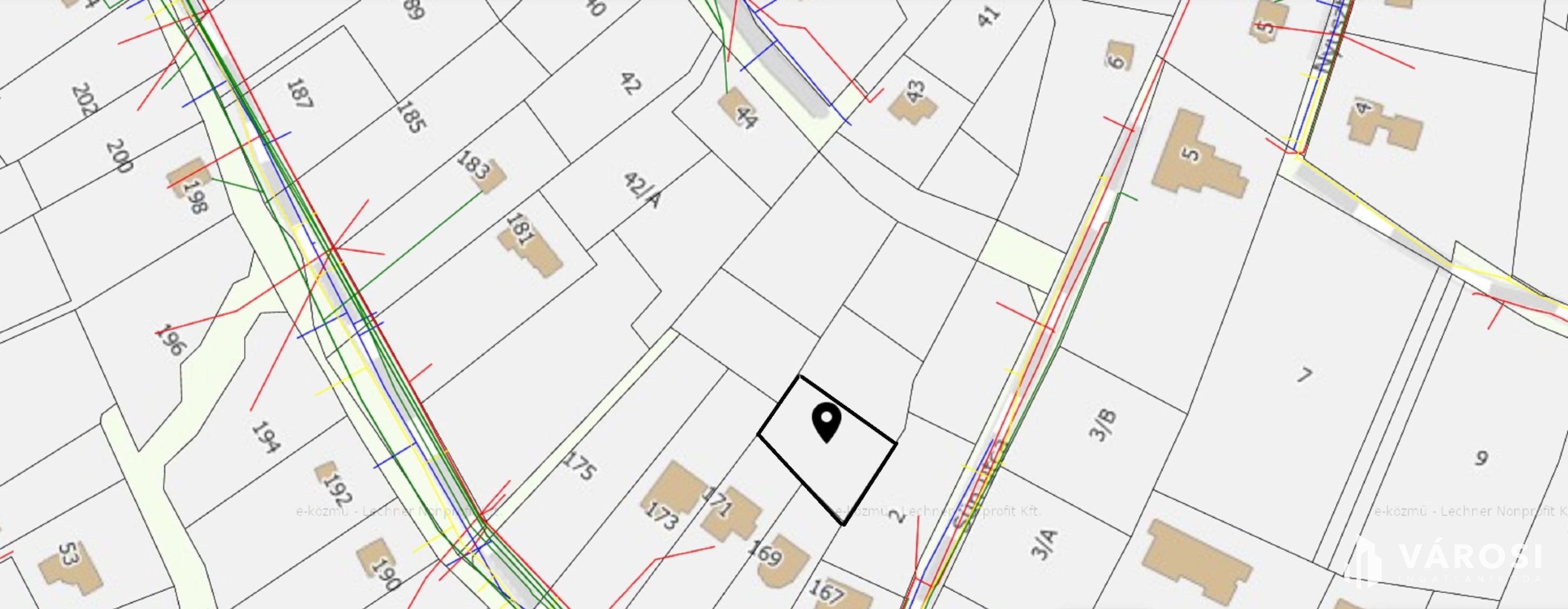 A telek egy korábbi, nagyobb telek megosztásából jött létre viszont jelenleg nem rendelkezik utcai bejárattal.