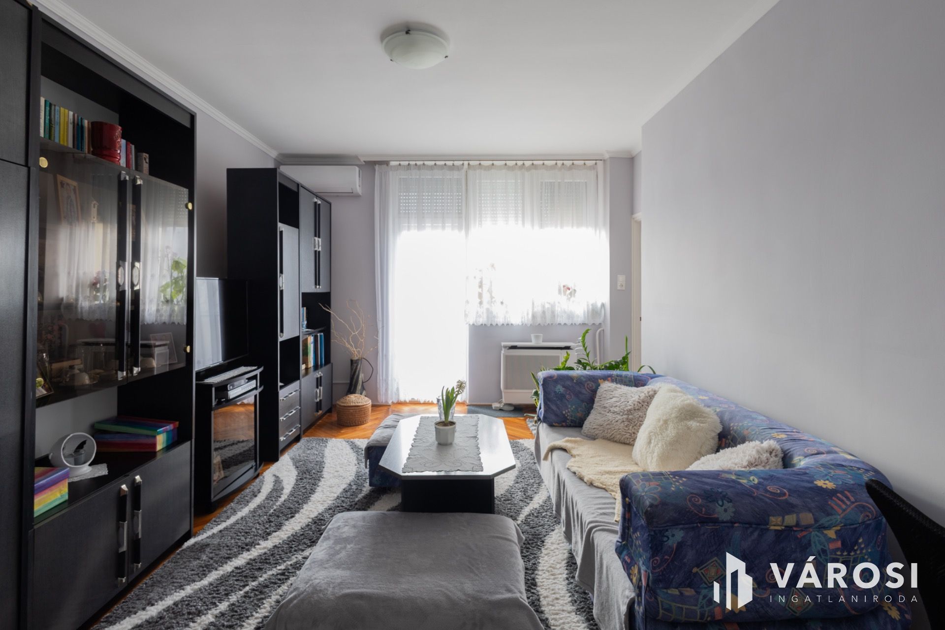A lakás elrendezése praktikus és otthonos: egy tágas szobával, nagy nappalival, napsütötte erkéllyel, kényelmes konyhával, valamint külön fürdőszobával és WC-vel rendelkezik, emellett egy kamra és több gardróbszerkény is segíti a pakolást. Az ingatlan új műanyag nyílászárókkal és redőnyökkel van felszerelve, így biztosítva a hő- és hangszigetelést. A szúnyoghálók további kényelmet nyújtanak a nyári hónapokban.