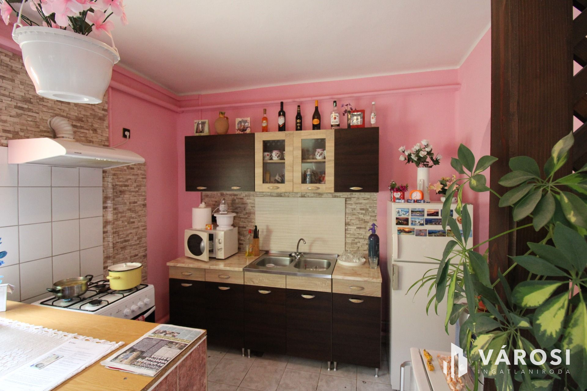 Eladó Tótkomlós városában, egy kertvárosias környezetben fekvő családi téglaház. A kétszintes ingatlan 1390 m²-es telken helyezkedik el, összesen 98 m² laktérrel rendelkezik. A házba belépve egy impozáns méretű amerikai-konyhás nappaliba érünk, mellyel szemben egy tágas, kellemes méretű szoba nyílik. A földszinten külön WC és egy sarokkádas fürdőszoba, valamint a konyha melletti spájzból juthatunk a garázsba. Az emeleten három kisebb méretű szobácska található, melyek lamináltpadlóval burkoltak az egyikből pedig egy tágas erkély nyílik. A falazat és a tetőszerkezet jó állapotú, a villamoshálózat felújítása megtörtént. Az udvarban fúrtkút található, valamint biztosított az udvari gépjárműbeálló lehetőség is.