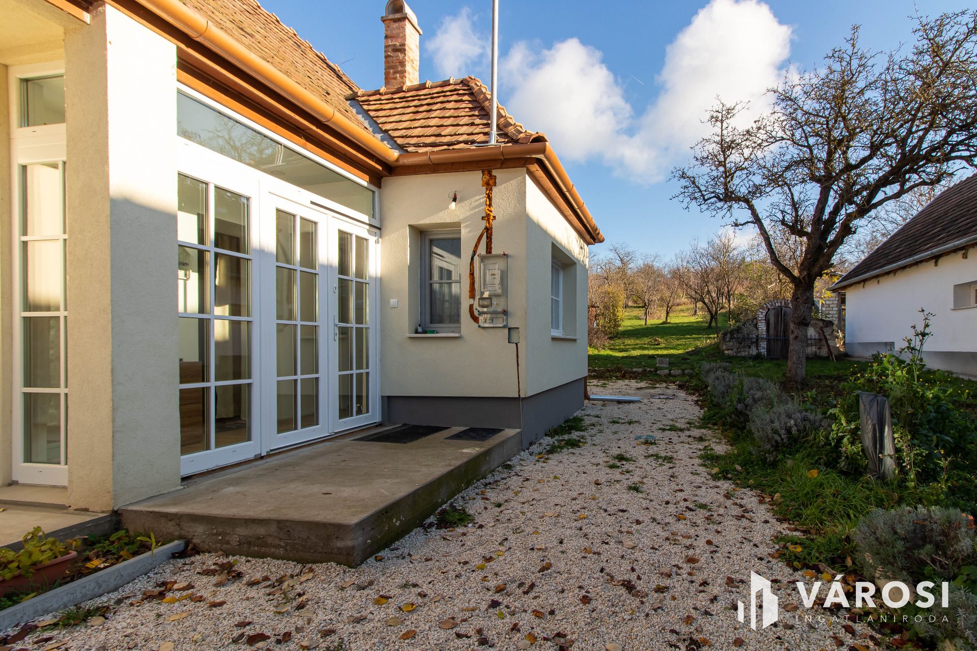 Budapest agglomerációjában, azon belül is a budai oldal egyik falusias jellegét megőrzött településén, Tinnyén, egy csendes, hangulatos utcájában kínáljuk eladásra ezt a különleges atmoszférájú, teljeskörűen felújított verandás parasztházat. A ház alig öt percnyi sétára található a falu központjától, mégis nyugodt, természetközeli környezetben áll, egy hatalmas, 1860 m²-es telken, amelynek valódi értéknövelő lehetőségét az adja, hogy hamarosan új utca nyílik a telek végénél – így az oszthatóvá válik, és építési telek besorolást kaphat. Ez ritka adottság, amely nemcsak kényelmet, hanem remek befektetést is ígér.